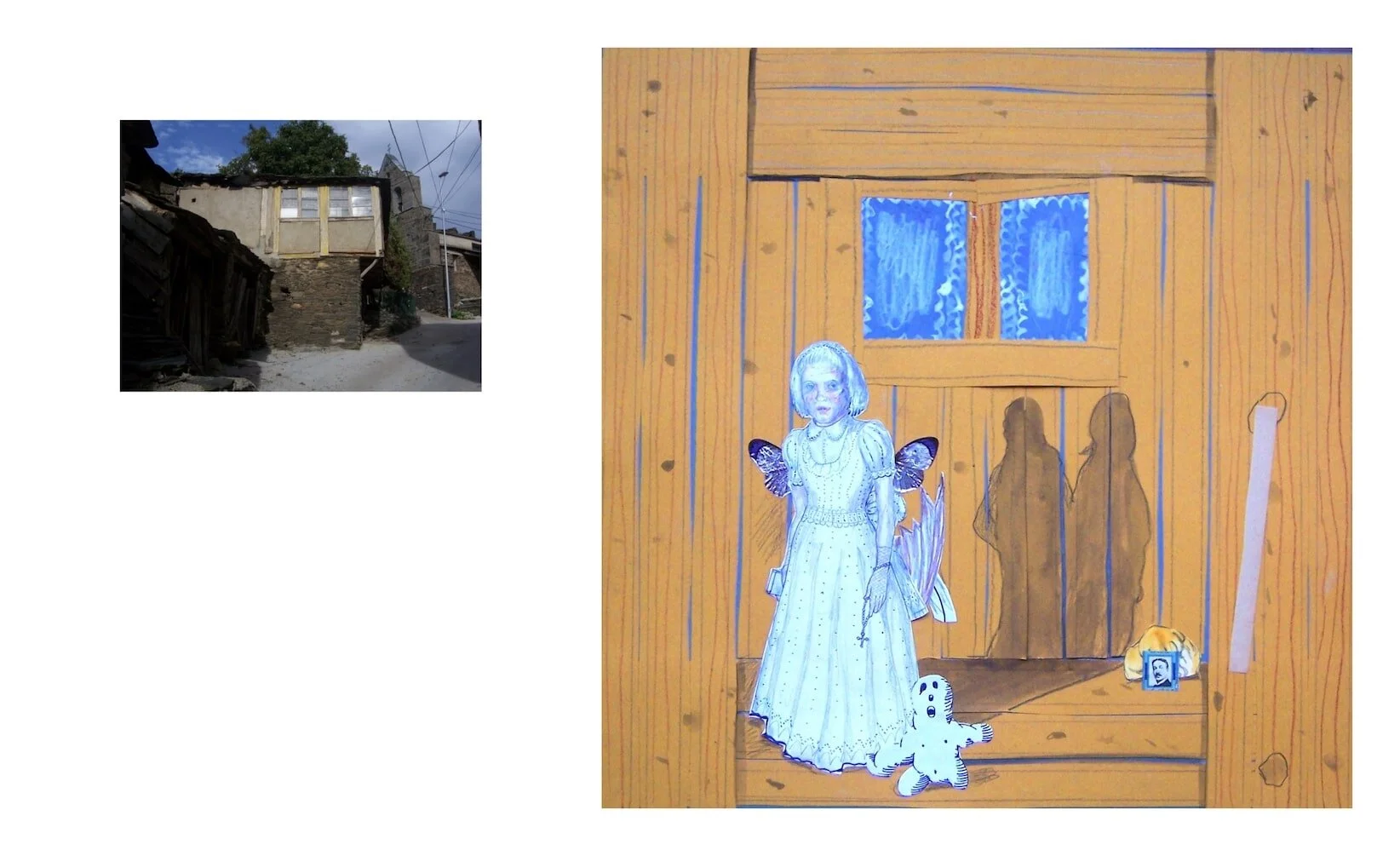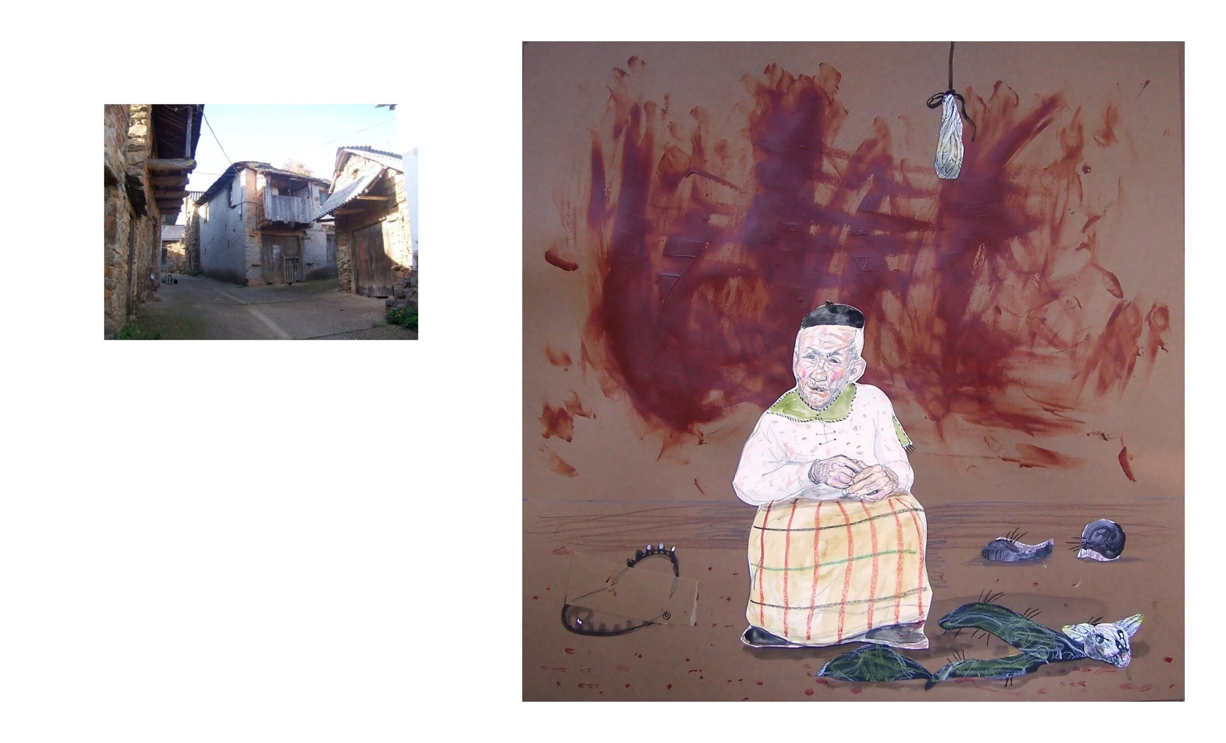 This project is a half poetical, half-documentary atlas about one legendary faraway Spanish territory: la Cabrera Leonesa. This region, placed between Galicia and Leon, was famously visited by journalist and writer Ramón Carnicer in 1962. In Autumn 2008, I would follow his steps, taking numerous pictures of empty houses and neglected dovecots. Concerning each photograph, the life and deeds of every last dweller was imagined by drawing them all locked up inside like specters in a castle. A brief handwritten story tells us about their ill fate. To write these tales, a highly threatened rural dialect was chosen, which was once common in the area. In 2017, this project was shown at Spanish Academy in Rome, within the group exhibition “Many roads. Contemporary images of the Way of St. James”. In 2018, the same exhibition moved to MUSAC (León-Spain).